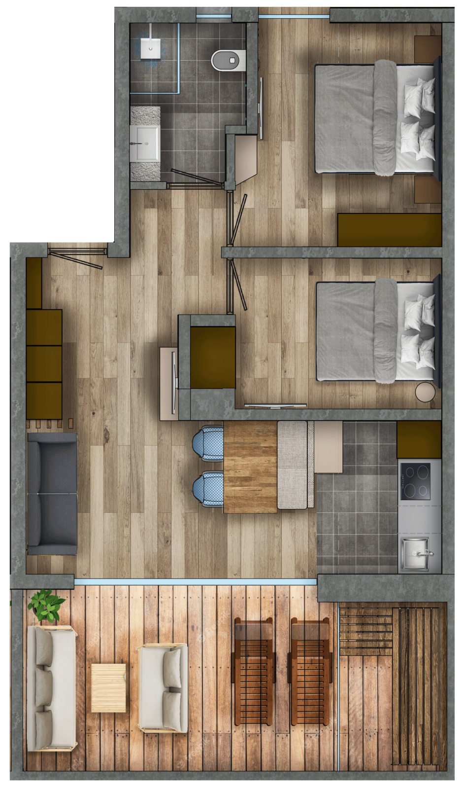 - Eigene Sauna im Balkonbereich (Saunatuch und Bademantel)